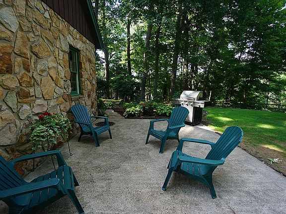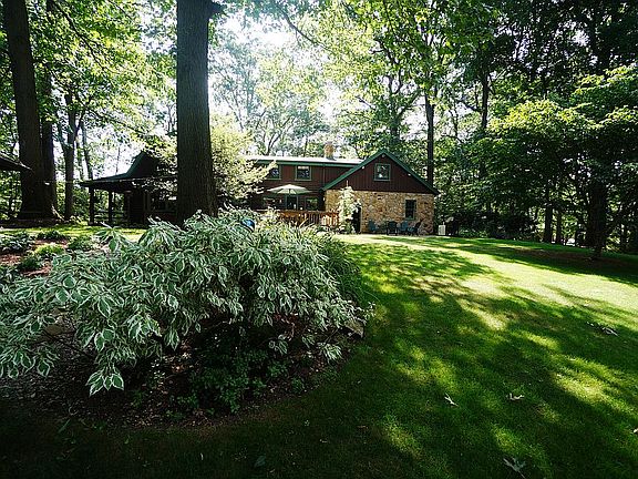 Your own private sanctuary nestled among the trees this custom home is unquestionably the most beautiful, relaxing home you will ever experience Built of rugged stone mixed w authentic full logs Two sheltering porches and deck outside Inside the warmth of wood walls, porcelain tile & ash flrs speak quality adds a feeling of security A floor plan designed for flexiblity so one can switch rm uses as needs change Enjoy a charming dining area or the island kitchen w stylish gray cabinetry & jet black granite counters w crystal sparkles add a touch of whimsy A family rm w its stone wall feels cool on a hot summer day yet light a fire and the room instantly becomes a retreat during the coldest winter Upstairs 3 huge bdrms w angled roof lines creates distinct cozy, niches you simply wonâEUR(tm)t ever want to leave 3.5 modern baths Walk in closets & attic storage 3 FP's Gamerm workshp Heatd Garages Dbld sized shed Come discover an immaculate home w timeless styling Set on a private lane Warranty