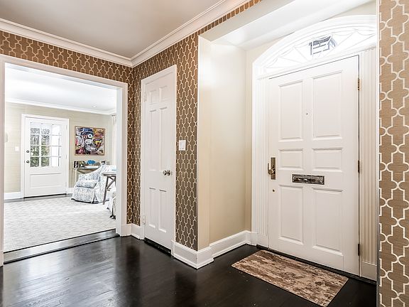 Sun-filled and updated classic brick Center Hall Colonial beautifully sited on a level .38 acre in Heathcote with superb curb appeal. Designer finishes coupled with classic architectural detail create a chic and sophisticated feeling throughout this impeccable home. Featuring four bedrooms on the second level, a first floor bedroom/home office, three full baths, one half bath and a fabulous chef's eat-in kitchen with granite counters, high end stainless appliances, including a Sub-Zero refrigerator, Viking range and hood and two wine refrigerators. The generously sized living areas and bedrooms provide a gracious open feeling. The expansive, fully fenced and private, level yard hosts a covered porch as well as a slate patio, providing the perfect setting for summer dining, entertaining, recreation. The square footage includes a bright, cheerful, finished playroom (approximately 250 square feet) on the lower level that leads to a large storage/laundry room and an attached 2-car garage.