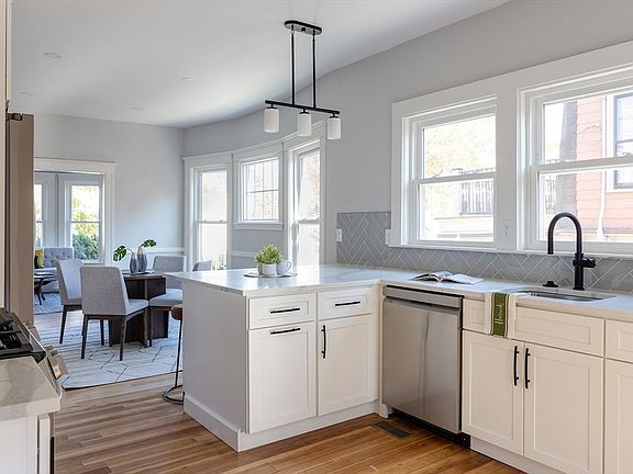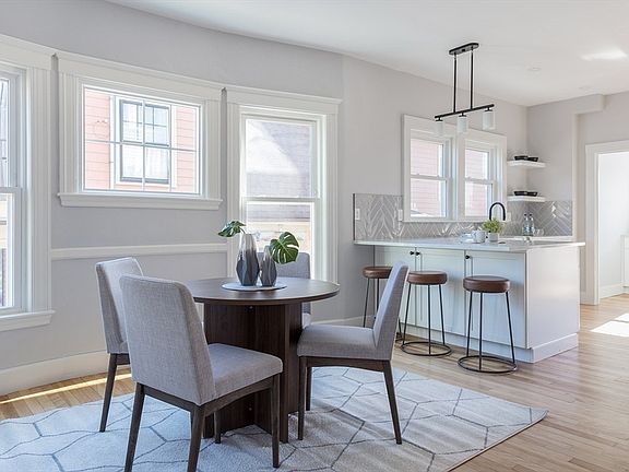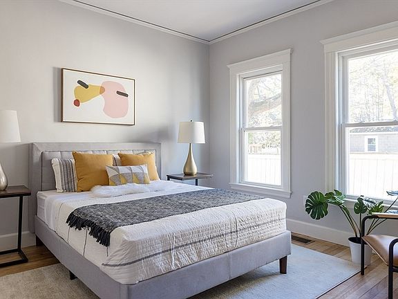Beautiful, light-filled, with views of Lower Mystic Lake, 45 Draper Avenue is a rare condominium property on a delightful side street of handsome homes. Part of a newly renovated two-unit building, it features classic architectural details and contemporary flair, with hardwood floors, an open floor plan, dining room, spacious and crisply styled kitchen, walk-in pantry, comfortable full bathroom, and in-unit laundry. A main bedroom is on the first floor; upstairs is a private second bedroom. Downstairs is a large, clean, well-lit basement area with a new HVAC system, air-source hot water heater, and abundant storage. A covered back porch provides a perfect spot for morning coffee and sunset views. One off-street parking spot, access to the lake, and proximity to Bishop Elementary School round out this very special offering.