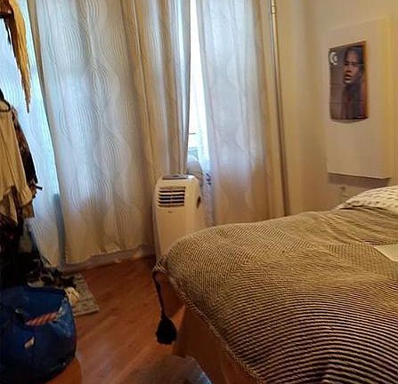 Approx 1100 sq., ft., private box 2 bedrooms on the opposite sides of the apartment. Apartment located on the 4th floor, 3 flight up. Super sized 2 bedrooms with tons of windows, both bedrooms can fit a king size bed and dressers. Hardwood floors throughout, gigantic living room, super sized eat in kitchen with tons and tons of kitchen cabinets. Heat and hot water included in rent. Cats ok. Sorry no Dogs.