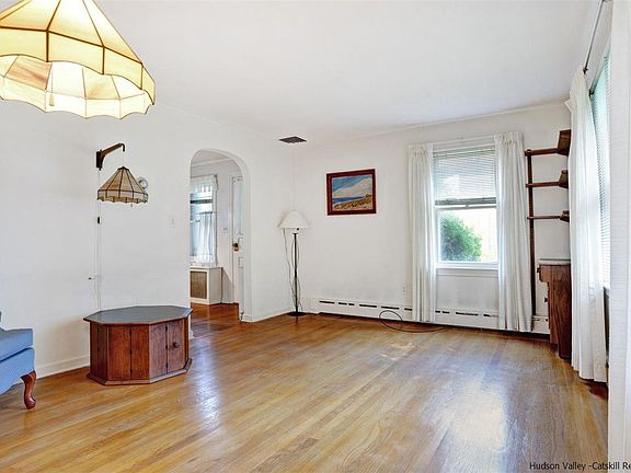 This Sweet Cape is in a desirable location close to all that uptown Kingston has to offer.This 2 bedroom 1 bath house is offering hardwood floors throughout(in need of some refurbishing), central air, enclosed porch to sit and relax in a bugless rainless environment and a clothesline off of the porch Walk up to the 2nd level to a 426 sq ft. unfinished space ready for the buyer to do as they please. The unfinished basement has a workshop area, washer and dryer and a 1 car garage. The backyard is spacious, level, nice fencing, mature trees and a large chain link dog kennel comes with the house. Your wait is over come take a look today. Easy to show!
