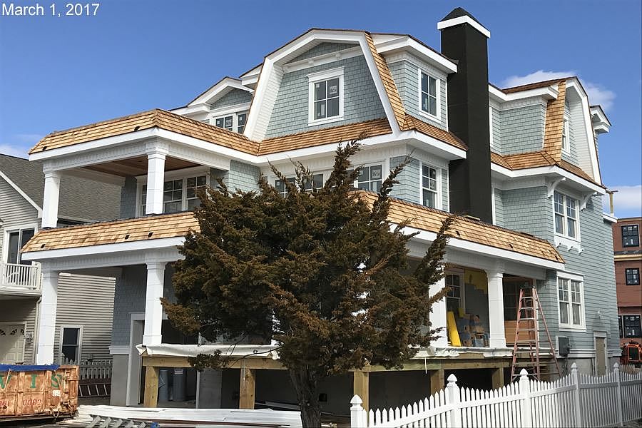 BRAND NEW & ONLY 6TH FROM THE BEACH, THIS HOME OFFERS THE MESMERIZING SIGHT & SOUNDS OF THE OCEAN! Enjoy fantastic views from the 2nd & 3rd floor, including the Master Bedroom & Master Bathroom! The buried utility lines on this street enhance the view & the aesthetics. This 3-story home offers one of the most sought after floor plans on the Island! The 6 bedroom, 6.5 bath design allows plenty of living space & privacy (5 of 6 bedrooms have their own private bathroom), covered porches & large sun decks, an attractive coffered ceiling above the Living Room with fireplace and a First Floor Family Room w/wet bar overlooking a sparkling, heated pool. Additional special features include: Maibec (slate blue) "double-dipped" cedar siding (15 yr. warranty), a cedar roof, a garage, a 4 stop elevator, 4 large decks (3 of which offer an ocean view), 3 zones of high efficiency gas heating & central a/c + a fireplace, a large walk-in pantry, second laundry area on 3rd floor, a central vac system, hardwood flooring & granite throughout, stainless appliances, an attractive grass yard with beautiful landscaping and an irrigation system & pavers! Move-in before the summer!! The interior photos shown on this listing are of a comparable home. Check back for updated photos. Anticipated completion mid-May 2017.