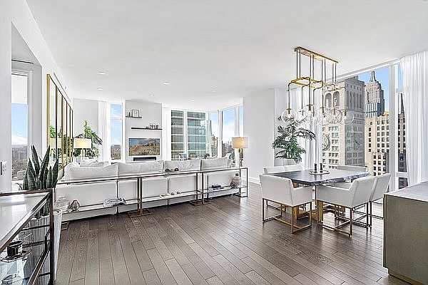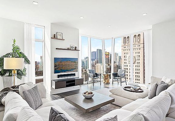 AVAILABLE JUNE 1ST ; FURNISHED ; 12 MONTH MINIMUM LEASE TERM Perched high above the Flatiron District, with 10-foot ceilings and floor-to-ceiling windows, boasting southern, western, and northern exposures, Residence 34A commands dramatic architectural and river views, is awash in natural light throughout the day and basked in golden sunsets. The windowed kitchen boasts Nanz hardware, Sub-Zero and Miele appliances, custom cabinetry by Molteni, marble countertops and backsplash. Adjacent to the kitchen's open breakfast counter, the wet bar outfitted in marble, solid-oak paneling with a Sub-Zero wine refrigerator is ideal for entertaining. The corner, southwest facing Master Bedroom Suite includes a large customized walk-in closet, a windowed five fixture master bath and abundant natural light. Bathrooms feature a handsome selection of marbles, custom wood vanities, recessed medicine cabinets, inset shower and tub niches, and Waterworks fixtures. Residences include 4-pipe fan coil HVAC systems and Kraus home automation systems. Designed by the world-renowned architectural firm Kohn Pedersen Fox Associates and located on tree-lined 22nd Street between Park Avenue South and Broadway, Madison Square Park Tower's 75-foot-wide granite base blends perfectly with the neighboring facades, with the glass tower ascending to it's 777-foot pinnacle above Flatiron. Residents enjoy five floors of amenities consisting of a fitness center with boxing and private training suite, multi-sport simulator, basketball court, children's playroom, library, billiards, card room, terrace with outdoor grill, and two gracious entertaining spaces including Club 54, perfect for entertaining with a full kitchen and some of the most spectacular views in New York.