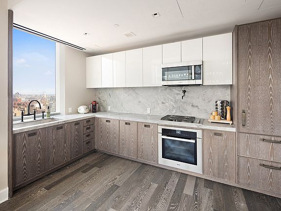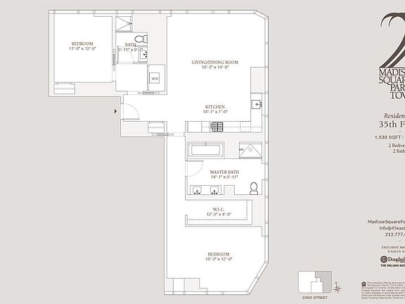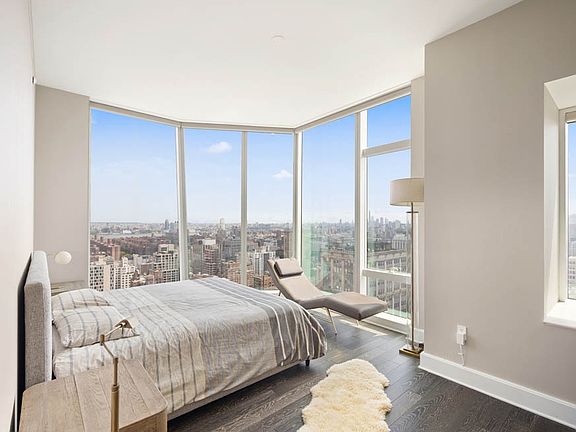 This two bedroom residence features a corner living/dining room, surrounded by floor-to-ceiling windows showcasing stunning Midtown skyline views to the North, East and South. The kitchen features marble countertops and backsplash, Nanz hardware, Sub-Zero and Miele appliances, custom-designed cabinetry by Molteni including a high gloss white lacquer upper cabinetry and framed solid white oak lower cabinetry. Bathrooms feature a handsome selection of marbles, custom wood vanities, recessed medicine cabinets, inset shower and tub niches, and Waterworks fixtures. Residences include 4-pipe fan coil HVAC systems and Kraus home automation systems. The residences at Madison Square Park Tower are perfectly positioned in one of the most iconic and culturally sophisticated neighborhoods in Manhattan- the Flatiron District at Madison Square Park. Transforming the downtown skyline, the soaring tower is a sculptural glass silhouette standing at sixty-five stories rising seven hundred and seventy seven feet in the sky. The striking exterior, crafted by the world-renowned architectural firm Kohn Pedersen Fox Associates, wraps around modern, elegant interiors designed by the celebrated Martin Brudnizki Design Studio. The tower features a 75-foot-wide granite base that fits harmoniously within the tree-lined block and marks a sense of arrival before ascending to eighty-three residences. Floor-to-ceiling windows offer a dramatic cityscape that includes the Empire State Building, Chrysler Building, the clock tower at 1 Madison Avenue, World Trade Center, the Hudson and East Rivers, and Madison Square and Gramercy Parks. The collection of amenities throughout five floors consists of a fitness center with boxing and private training suite, golf simulator, basketball court, childrens playroom, library, billiards, cards room, terrace with outdoor grill, and two gracious entertaining spaces including a fifty-fourth floor lounge.