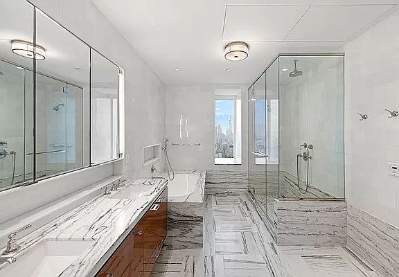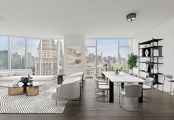 DEAL OF THE CENTURY. PARKING AVAILABLE FOR PURCHASE. Flatiron Masterpiece in the Sky. Wrapped in curtain wall glass windows and boasting commanding views of the Hudson River, 1 WTC, and the midtown skyline, this stunning 3-bedroom, 3-bathroom home exemplifies modern luxury and design. Features of this 2,451 sq. ft. corner condo include rich wide plank oak floors, airy 10.5-ft ceilings, a state-of-the-art HVAC system, high-end KRAUS Hi-Tech home automation, a stacked washer/dryer, radiant heated ceiling panels, a wet bar with a built-in wine cooler, and northern, southern, and western exposure. The home begins with a welcoming entryway adorned with a coat closet and then flows into an expansive great room and kitchen saturated with northern and western light. The windowed kitchen is equipped with luxurious Bleu de Savoie marble countertops and backsplashes, custom Molteni cabinets and drawers, an eat-in peninsula with an overhead glass rack, Nanz fixtures, a wall-mounted pot filler, and a suite of fully-integrated high-end appliances from Miele and Sub-Zero. The primary suite possesses a walk-through dressing area with built-in storage as well as a windowed en-suite bathroom with Vermont Danby marble floors, a custom double vanity, Waterworks fixtures, a step-in rain shower, and a deep soaking tub. The second and third bedrooms each have private closet space and easy access to pristine full bathrooms. All bathrooms come with radiant heated floors. Madison Square Park Tower is a luxury condominium located just off Madison Square Park. Amenities are spread across five floors and include a children's playroom, a library, a billiards room, a grilling terrace, multiple lounges and entertainment spaces, and a state-of-the-art fitness center with a boxing area, training suite, golf simulator, and basketball court. There is a full-time doorman, a live-in super, and on-site parking. Plenty of dining and shopping options are moments away, and Gramercy, Union Square, and Madison Square Parks are all within walking distance. Nearby subway lines include the 4/5/6/L/N/Q/R/W. Pets are welcome.