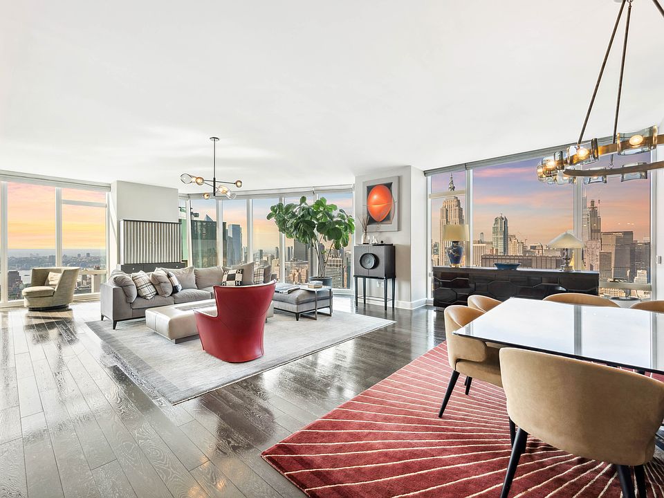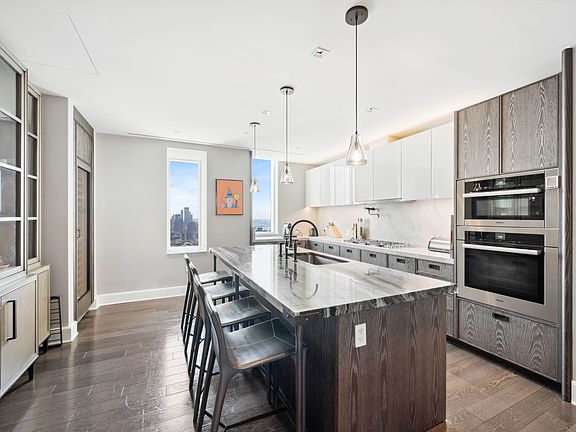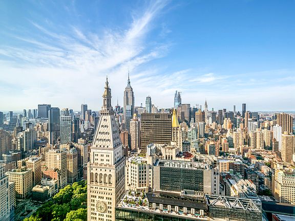 In the heart of the Flatiron District (across from Madison Square Park) is pinnacle of luxury living at 45 East 22nd Street. The 57th floor at Madison Square Park Tower is turnkey residence encompasses the entire floor, spanning 4600sqft. With its own elevator landing and, offering unparalleled 360-degree panoramic views of the Manhattan skyline from every angle, Residence 57 is one of only a few homes downtown with the unrivalled Manhattan skyline either helicopter view. With 10.5 foot ceilings throughout, 4 spacious bedrooms, 4.5 bathrooms, and a 40-foot, open living and dining room, there is generous space for both relaxation and entertainment. The views of the Manhattan skyline feature iconic landmarks, with the living/dining room like the Empire State Building, Chrysler Building, Clocktower and more. Attention to detail is evident from the meticulously crafted finishes to the high-end appliances. The eat-in kitchen features Molteni custom cabinetry with Nanz hardware and honed marble countertops. Appliances by SubZero and Miele include a gas cooktop, wall oven, built-in microwave, two dishwashers, and full-sized wine fridge. Direct southern views of downtown Manhattan and Freedom Tower will elevate even casual meals at the breakfast bar. A large vented laundry room is situated just off the kitchen. The Principal bedroom features floor-to-ceiling windows with open views east and north and a stunning ensuite bathroom with a freestanding soaking tub, enclosed private commode, double vanity, heated floors, and a Waterworks shower. The Principal bedroom suite boasts luxurious custom closets, including a sleek lighted display case for shoes and bags. The 3 other bedrooms enjoy open views, ensuite bathrooms, and ample closets. As a full-service condominium, 45 East 22nd Street offers an array of amenities spanning multiple floors, including a 54th floor resident lounge with demo kitchen and jaw-dropping views. Additional amenities include a fitness center, golf simulator, basketball court, billiards and card rooms, library, terrace, and playroom. There is also a 24-hour doorman, live-in resident manager, storage, and onsite parking. Located at the crossroads of Chelsea, Gramercy, NoMad, and Flatiron, this home is a serene oasis above the bustling city streets. With Madison Square Park just moments away, enjoy the tranquility of nature amidst the vibrant NYC energy. Don't miss this rare opportunity to own a piece of Manhattan's skyline, experiencing luxury living at its finest in this remarkable full-floor residence at Madison Square Park Tower.