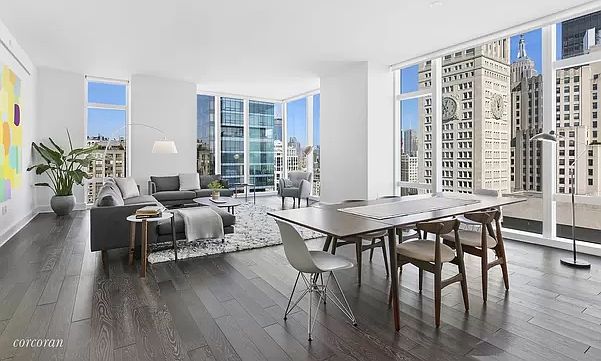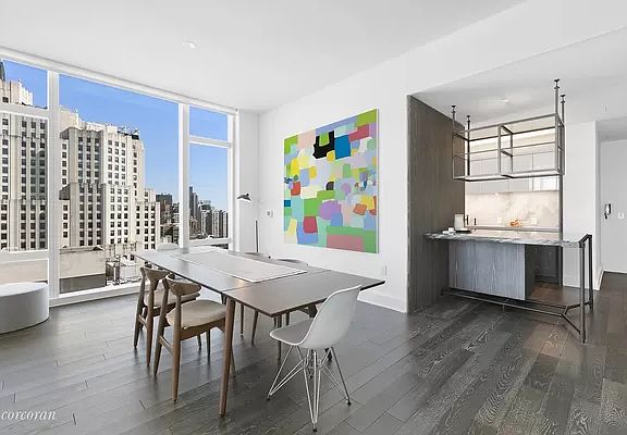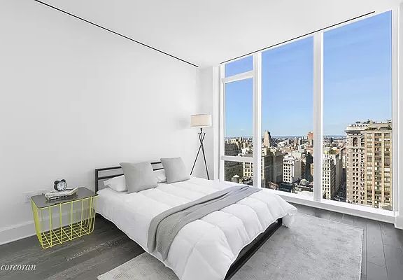 South, west, and northern views!! Call this your new home in this sought out luxury building in this desirable Flatiron neighborhood. This gracious two-bedroom residence features a corner living/dining room, surrounded by floor to ceiling windows showcasing stunning Midtown skyline views. The kitchen features marble countertops and backsplash, Nanz hardware, Sub-Zero, and Miele appliances, custom-designed cabinetry by Molten. Adjacent to the kitchen, a solid-oak paneled wet bar with marble countertop, and Sub-Zero wine refrigerator compliments space. The corner, southwest facing Master Bedroom Suite includes a large walk-in closet and abundant natural light. Bathrooms feature a handsome selection of marbles, custom wood vanities, recessed medicine cabinets, inset shower, and tub niches, and Waterworks fixtures. Residences include 4-pipe fan coil HVAC systems and Kraus home automation systems. Madison Square Tower is designed by world-renowned architects Kohn Pedersen Fox with interior and amenity spaces designed by Martin Brudnizki. The impressive amenities include a fitness center, boxing suite, golf simulator, basketball court, playroom, library, billiards and cards room, terrace with outdoor grill, and two gracious entertaining spaces. Madison Square Tower is a full-service condominium with full-time doorman, concierge, and live-in resident manager.