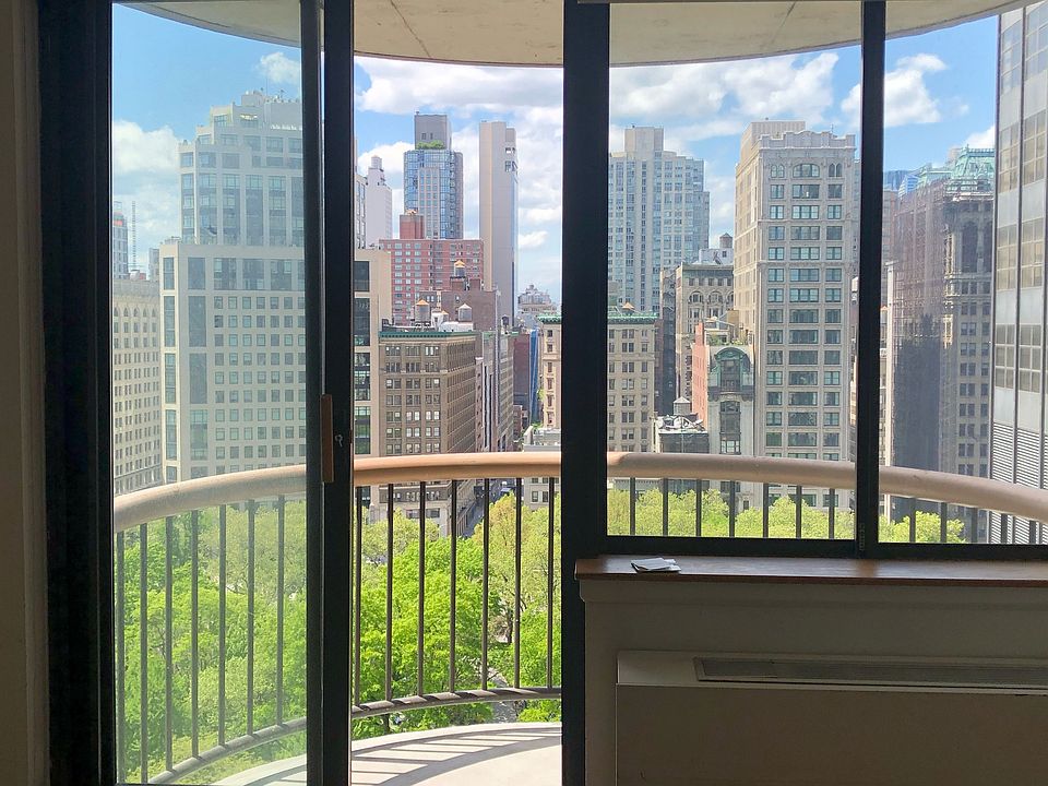 *Direct park view. Large 1BD with Private Balcony, Direct View of Madison Square Park, 1BD home awaits you in this full service, Luxury doorman building, just steps from Madison Square Park. Includes a gym for residents. **Laundry on the same floor. Microwave, dishwasher, and breakfast bar, and a huge living room that has access to your very own balcony. West-facing windows fill the space with light. The bedroom is incredibly spacious, with oversized windows and excellent closet space; there are also multiple closets in the hallway, making storage a breeze. This beautiful building includes amenities such as a full-time doorman, gym, laundry on the same floor. Conveniently located, just steps away from restaurants, night life, transportation etc. May be available in June **Agent/owner