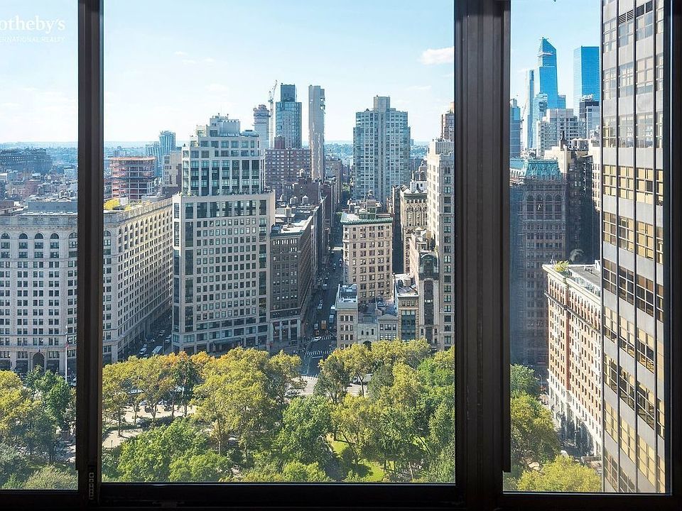 Welcome to residence #33B. An absolute beauty of an apartment offering unobstructed direct Madison Park views, along with skyline views of Flatiron. This 2-bedroom, 2-bathroom home can be easily be converted into a 3-bedroom. As you step in, a charming foyer splits the apartment into two bedrooms with individual en suite bathrooms. A corner sun-drenched unit, this home offers the perfect backdrop of fine living in New York City. The master suite offers a personalized walk-in-closet, access to a private balcony and an incredible master-bath. The living room is complimented by an exceptional 33 frontage with hardwood flooring throughout. The Stanford Condominium is full-service, luxury doorman building located in Flatiron, one block from Madison Square Park. The building includes a gym, a lovely outdoor courtyard, and laundry on every floor. This ideal location is convenient to all subway lines, excellent dining, Eataly, Trader Joes, and all shopping and services. This a pet friendly building.