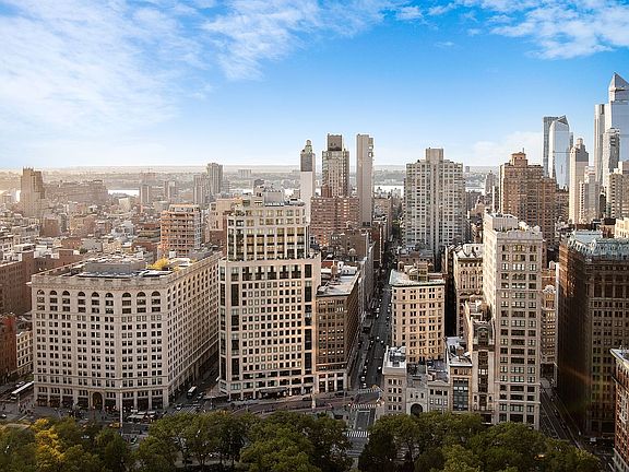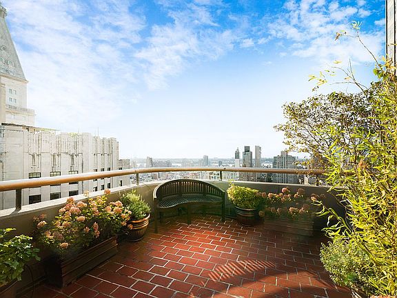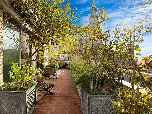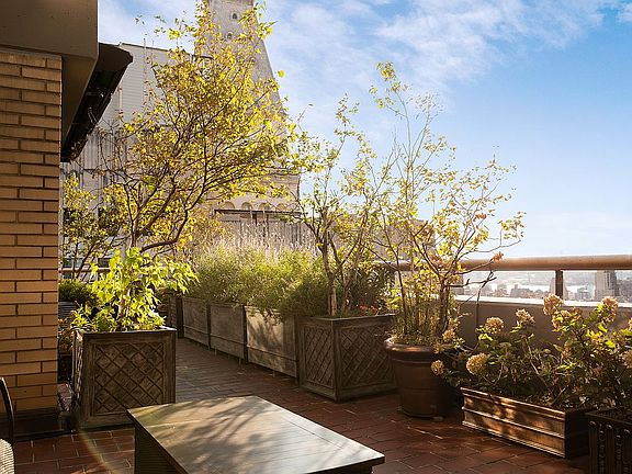 Neverending Sunsets Over NoMad Offered for the first time in over 20 years, this rarely available duplex penthouse offers over 1,000 square feet of outdoor space across two balconies and an incredible wraparound terrace with panoramic views over Madison Square Park. Perched atop The Stanford Condominium on the 41st and 42nd floors, Penthouse B is a beautifully maintained corner two-bedroom, two-bathroom home with magnificent light and scale. Oversized windows frame its southern and western exposures, capturing city and Hudson River vistas from dawn to dusk. Upon entering the duplex apartment’s gracious foyer on the first floor, an expansive living room with a wood burning fire place and balcony leads you to the adjacent dining room and separate, fully-appointed windowed kitchen with wraparound views to the west. A sizable office (or true second bedroom) with another private balcony, a full bathroom, and ample closets and storage spaces complete this floor. Up the architecturally striking staircase is an impressive master suite and separate guest access to the apartment’s extraordinary wraparound terrace. With various spaces to commune—all with sweeping views—the lush terrace is fully outfitted with an irrigation system, storage shed, retractable awning, pergola and outdoor grill. Additionally, a private entrance just off the western side of the terrace offers access to the master bedroom suite through a wall of large sliding glass doors. With this rare indoor/outdoor living experience, a second wood burning fireplace, and its newly gut renovated en-suite windowed-bathroom with soaking tub and a separate shower and water closet, the master bedroom suite truly feels like a sanctuary high above it all. Also, on this floor are three generous closets, including a sizable custom walk-in, and a separate laundry area with in-unit washer/dryer. The Stanford is a full-service, luxury doorman condominium located in the Flatiron/NoMad neighborhood next to Madison Square Park. The building includes a gym and courtyard for residents, and pets are welcome here. An ideal location, the building is convenient to all buses and subways, as well as all the best Park Avenue South restaurants, shopping and services the neighborhood has to offer. Note there is a Capital Assessment of $606.29 through 2021.