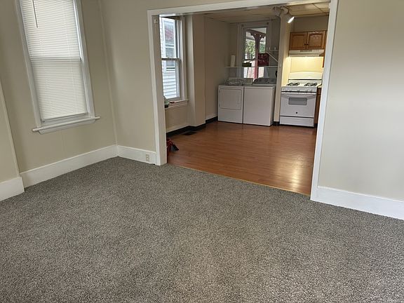 Freshly painted interior. New Carpeting. New front porch. Newly painted Front Porch woodwork. Washer, Dryer, Frig, gas stove, internet ready, TV ready, three new windows just installed, new front storm door just installed. Owner pays for sewer. Tenant responsible for Utilities