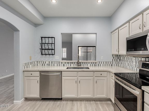 Come enjoy this remodeled move in ready townhome. In this wonderful community of Park Center Place. Relax in your courtyard with your morning coffee. This luxury townhome has high end touches, as you can see in the pictures. Very open kitchen with granite, single sink and high-end appliances that all stay for you to enjoy. Vaulted ceiling, plantation shutters, remodeled walk-in showers and so much more. Lots of storage with $4000 plus of Husky garage cabinets. Excellent location close to 202, shopping, dining, and walking distance to spring training with the Oakland. A's. This is a one of kind rental in a well-maintained community with heated pool and spa.