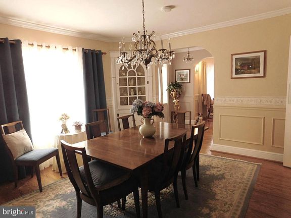 Charming 4 bedroom 2.5 bath French Cottage which sits on almost 1/3 acre of land. As you approach the front door, you will greated by the front porch. From the foyer to the left side you can enter the beautiful living room with Marble Fireplace go give a ward glow in the winter and sparkle for the holidays. To the right is a charming dining room with built corner cabinets for displaying your lovely china and crystal. Both rooms have crown molding and chair rails. House has original hardwood flooring on both levels. There's a spacious main floor primary bedroom with 2 closets with mirrored doors. Next to it is the hall bathroom. Kitchen has recessed lighting and pantry for storage, 5 gas burner cook top and wall oven. Upstairs has 3 generous size bedrooms with hardwood floors and ceiling fans. One bedroom has a half bathroom attached. There's a full bathroom too and sitting area. Sun room overlooks the large backyard and enters onto the deck for grilling. The walkout basement is waiting to be finished to your taste. Plenty of parking on this property. 1 year old roof. Very close to public transportation and high speed line. Great Schools.