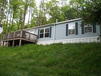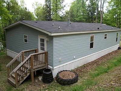 2 Great Homes in one location. 2011 & 2001 Dbl Wides with total seclusion and privacy. 3 bed/ 2 bath & 3 bed, 2 1/2 bath. Walking distance to town. All wooded, but could have a PERFECT view if you clear a few trees. Great for close family or a easy rental income. Taxes are for both homes together. Lot size & tax info from tax records.