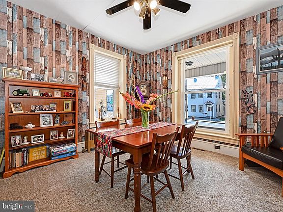 This 3 bedroom, 1.5 bath brick 2 story has all of the charms of small town living. It's welcoming covered front porch enters into the foyer that leads to the inviting spacious living and dining room. The eat-in kitchen leads to the large covered back patio - perfect for those backyard barbecues. The first floor mudroom also conveniently serves as a laundry room. Another huge asset of this property is the detached garage and workshop which could also provide extra storage in addition to the garden shed. Schedule your showing - this property will not last!