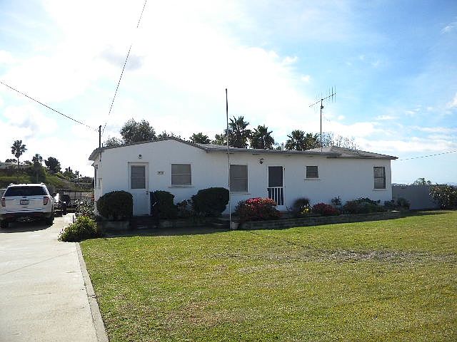 Ocean and Bay views from this single level home on huge, flat view lot. Views to downtown San Diego and Pt Loma too. Long driveway can accommodate RV parking. This probate sale is priced to sell fast. Seller repairing master bathroom with new tile flooring, new toilet and new vanity. Huge front yard and very large backyard. Covered patio. Home needs updating but is in good condition. Laundry room is on driveway side of house. Please submit all offers on Probate contract. Termite report on file.