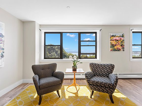 Welcome to the Eastern Promenade! 45 Eastern Promenade #BG is a lovely corner unit perched at the top of Munjoy Hill with ever-present water views from each room. Newly and completely renovated, this quiet and private unit offers a well-designed spacious kitchen with granite countertops, solid wood cabinetry, new appliances, an island, and tons of storage space. An oversized living area includes a dining area, living area, and easy space for an in-home office. The spacious primary bedroom with room for a king sized bed offers water views and a large custom closet to brighten your day. Even your large primary bathroom has awesome water views! The sweet second bedroom has an ensuite half bath and custom build closet. The renovation was professionally and thoroughly completed including a new kitchen, bathrooms, heating system, windows, floors, metal studs, plumbing, electrical, sprinkler system, walls/paint, walk-in closets, insulation, paint, and doors. Building amenities include professional management, 24-hour security, a shared outdoor patio, off-street parking (with garage parking during storms), a fitness room, common seating areas, laundry rooms, snow removal, and lawn care. The HOA makes things simple; it includes heat, hot water, high-speed Internet and cable TV. This is truly a stunning unit in an amazing location. You are steps to the food trucks along the eastern prom trail, kayaking off East End Beach, or a 15 minute stroll to downtown Portland. Come take a look at this fantastic condo in the perfect location!