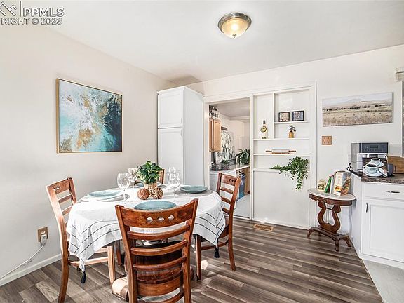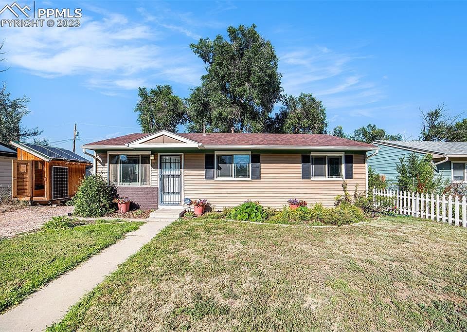 This move-in ready home welcomes you to 3 spacious bedrooms, 1 bathroom with private parking for 3 cars! The landscaped front lawn draws you through the door with luxury vinyl flooring and oversized tile throughout with a spacious living area. The open kitchen looks out over a fenced-in manicured backyard with mature trees. The large mudroom leads you out to the spacious, beautifully maintained yard with garden beds, a greenhouse, a portable solar-heated sauna for relaxing, and plenty of space for outdoor entertaining during Colorado’s 300 days a year of sun! Plenty of updated features in this home too! Updated Roof, windows, blinds, furnace, electrical, paint, toilet, fixtures, lights, updated bathroom vanity, large laundry, vinyl siding, and brick for low maintenance. Close to I25 and military bases, including Fort Carson, Petersen, and Schriever AFB. You’ll be close to shopping, hospitals, and schools. Friendly Neighborhood! Make sure not to miss this gem!