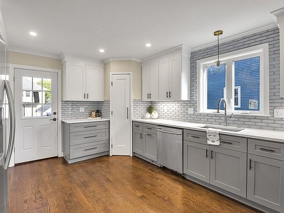 Meticulously renovated 4 Bedroom 3 Bathroom home in the heart of Watertown with garage parking and a fabulous floor-plan. Stunning custom kitchen with quartz countertops, stainless steel appliances, and a pantry. The open-concept dining area flows into the large living room and is flooded with natural light. The spacious primary bedroom is complete with a luxurious en suite bath. An additional bedroom and second full bathroom complete this level. The lower level, with nine foot ceilings and ample sunlight, offers two more sizable bedrooms, a full bathroom, laundry, and an amazing spacious bonus room with a wet bar. Additional features of this home include central air, beautiful hardwood floors throughout, plantation shutters, private deck, and a common back yard. Not to be missed! Currently rented for $5,500/Month until 8/31/2025.