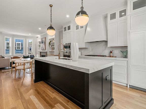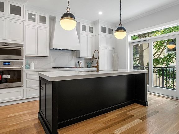 Moments from the Monument, this 4 bed/3.5 bath NEW construction tailored-made single family checks all the boxes: garage parking, roof-deck with Monument views, balcony & fenced in yard. Front door opens to an exquisite herringbone tiled foyer complete with custom shelving and bench. This level also includes a full bedroom & full bath as well as hall closet. Travel upstairs to find the main living area adorned with 10' ceilings, custom built bookshelves around tiled gas fire place, dramatic crown molding opening up to a custom chefs kitchen. Fisher & Paykel paneled fridge, Wolf wall oven and cooktop, Perlick wine fridge, Quartz countertops with "winged" island, paneled range hood, & white oak floors spilling throughout. Hall closet & powder room finish off this floor. Penthouse level floor features primary bedroom with custom built out walk-in closet. The luxurious en-suite bath offers double vanity & marbled walk-in shower with Brizo fixtures. Media/flex room in finished basement