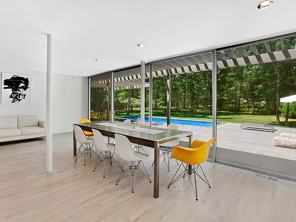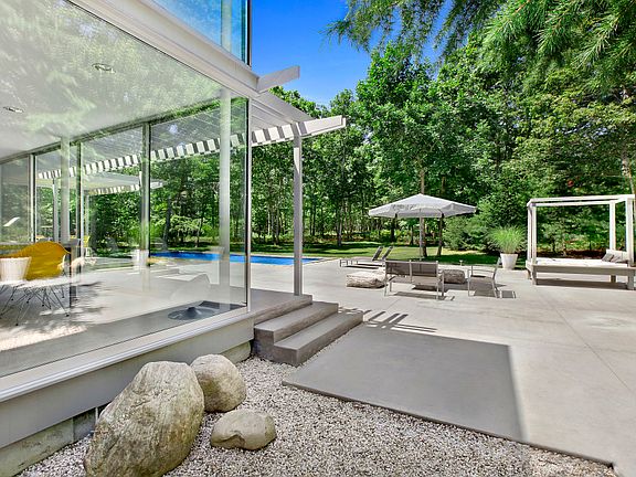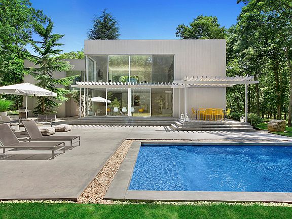 Rarely is a home of this architectural caliber brought to the market in this price range. Set amongst 1.4+ park-like acres of pure serenity, this Fernlund & Logan design is truly one of a kind. Minimalist design meets the Hamptons resulting in a true modernist beach house. Upon entry you are greeted by a living area flooded with light. 5 bedrooms adorn this modern marvel, with 3 full baths, wood burning fireplace and top-of-the-line everything. Two separate living areas, one on each level, gaze through walls of glass to the backyard oasis equipped with a generous patio, decking, heated gunite pool and a rolling lawn. Built in 2003 and then expanded and futher renovated in 2009, this home is fully equipped with all of today's conveniences from Miele and Liebherr, to central sound and a bridge leading to your master suite. Clean lines, minimalist sensibilities and chic outdoor living spaces make this an opportunity not to be missed. Widely published in Dwell, Ideales Heim and Telegraph Magazine, this is what the Hamptons' were always meant to be.