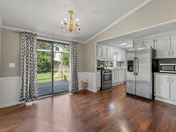 Wonderful 3 bedroom, 2 bath home located on a large lot in rural area. Great open floor plan with split bedroom lay out. Freshly painted kitchen with light bright work area and ample cabinets for storage. Convenient laundry area with nice washer and dryer. Open dining area with glass doors to the deck and large yard with fire pit for summertime campfires. Large two car garage with work bench area plus a third bay for a fun man cave or just lots of extra storage. Many new upgrades with flooring, painting, metal roof, and all appliances included. Come check out this move in ready and affordable home.