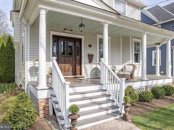 Beautifully updated American Four Square home in the heart of downtown Haddonfield!! This location is unparalleled just two blocks from downtown restaurants, shops, Patco train to Philadelphia, Farmer's Market and great weekend events. Starting with its classic, covered front porch and custom, polished mahogany front door, this home has it all and is absolutely turnkey. The kitchen is stunning with handcrafted Amish cabinets, white marble counter tops and stainless steel appliances. Peninsula seating for meals, built-in shelving for cookbooks and plenty of storage & prep space for the chef. Gorgeous dining room with a wall of custom millwork and a huge family room with tiled fireplace, tons of windows for great natural light and pristine wood floors with walnut inlay. The second floor boasts a primary suite with its own private bath- white, penny tile floor, designer chandelier and custom vanity. Two more spacious bedrooms with big closets and organizers share a neutral hall bath with off-white tile. The third floor has the 4th & 5th bedrooms (or a home office!). Brand-new laundry installed here too- or use the plumbing to add another full bath. Newer two-zone high-efficiency heat and air controlled by "Nest" thermostats and the water lines in the basement are new! Wonderful upgrades for this charming, vintage home. The backyard is great for entertaining with a new brick patio, bluestone flag stones, new shed and lovely landscaping. Desirable Elizabeth Haddon neighborhood, in the Blue Ribbon School District and just minutes from all the downtown fun. Can't beat the location, condition or value!!