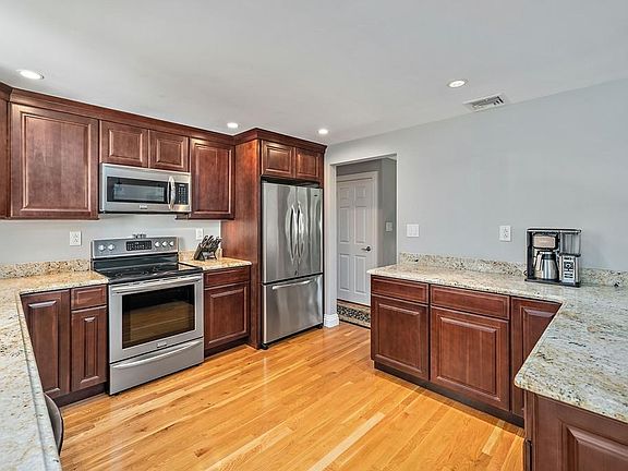 Beautiful home in a highly desirable location! Pride of ownership throughout this amazing 12 room, 5 bedroom home with so many options. This home boasts hardwood floors, 2 updated kitchens, 2 full bathrooms, updated energy efficient windows, newer heating system & so much more. Outside, there is a spacious and beautiful landscaped yard that is great for entertaining. Lower level offering no stairs to outside access. In-law section offers kitchen with granite, stainless appliances, full bath, 2 bedrooms, family room w/pellet stove. All Conveniently located 1 mile from the Braintree Commuter Rail/MBTA train station, shopping, golf, beach and highways. Great home for large or growing family, in law potential, or just 1 floor easy living. Extended family, In-Law, Au-pair suite, It's here! Buyer was unable to secure financing. Call for private showing.