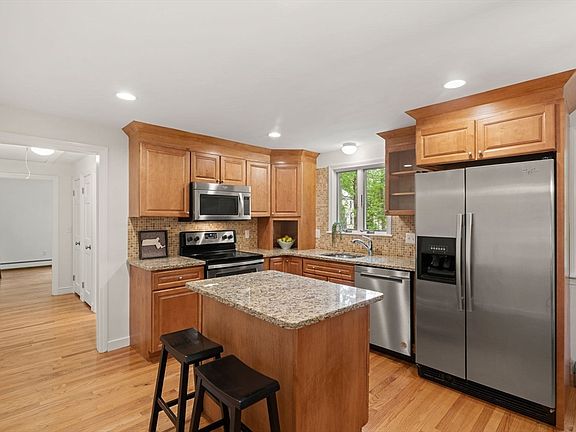 This updated home offers 1,736 square feet of thoughtfully designed living space. The main level features hardwood floors an updated eat-in kitchen, complete with granite countertops and stainless appliances, making it perfect for both everyday living and entertaining. The large living room, with its cozy fireplace, provides an ideal space for gatherings with family and friends. The lower level of this raised ranch features a potential third bedroom and boasts a generous family room, also with a fireplace, offering a versatile space for relaxation or play. A walk-out basement enhances this home's functionality, providing easy access to the outdoors and abundant natural light. You'll also enjoy easy access to Maynard's Assabet River Rail Trail, perfect for outdoor enthusiasts. Recent updates, including fresh interior and exterior paint and a brand-new roof, ensure this home is move-in ready. Showings start immediately. Offers are due at noon 6/9/25.