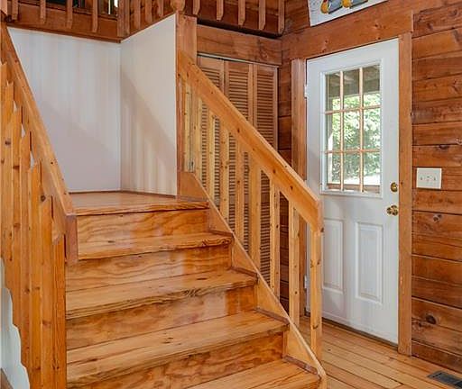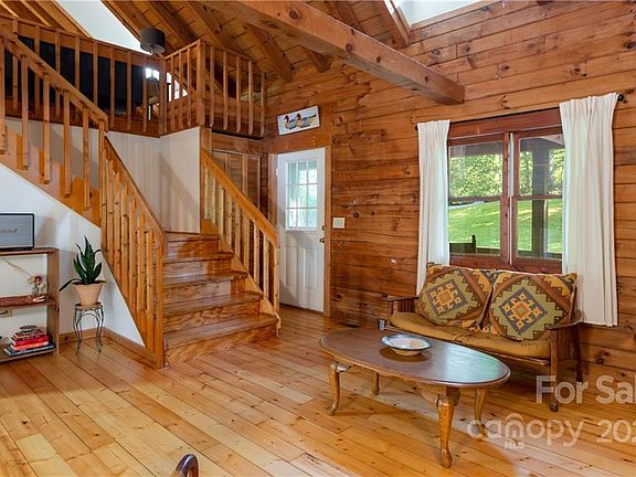 Quintessential log cabin in the woods in the heart of desirable Fairview. Updated kitchen and bathrooms make for a move-in ready retreat. Open floor plan with a large primary bedroom, bathroom, and sitting area on the second level. Finished basement ideal for a workshop, recreation room, playroom, or family room. Plenty of green space perfect for gardening, play, or pets. Covered, front wrap-a-round porch and private back deck with stairs into the yard allow for an ease of outdoor relaxation and entertainment. Short term rentals allowed. Minutes to schools, amenities, Turgua, and Whistle Hop Breweries. Only 15 minutes to downtown Asheville.