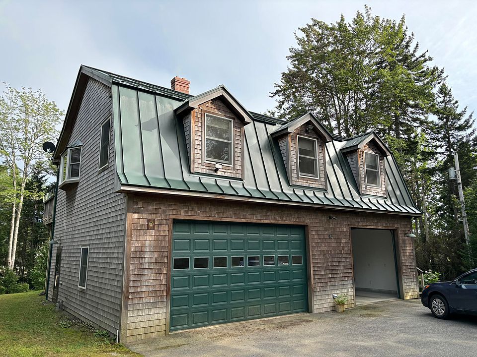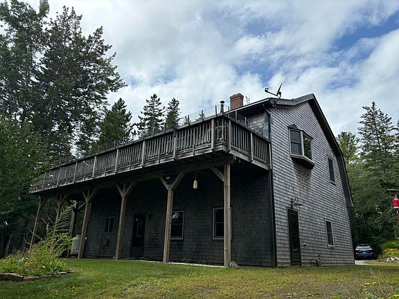 This property is NOT located in flood zone. Elevation certificate recently completed in December 2024 by Nathaniel G. Beal, F. E. Beal Surveying Company (License Number: 2286). This one owner year round stick built home offers 102 feet water frontage on Harrington Cove! First floor includes large laundry room with half bathroom and heated workshop (both wood stove and Rinnai propane gas heater). Second floor living area includes fully applianced kitchen with sliders to deck, living room with sliders to same deck (back deck faces Harrington Cove in rear), primary bedroom with walk-in closet, full bathroom, and second bedroom. Large deck includes retractable awning (with remote control). Chair lift included on stairway from first to second level inside. Kohler whole house generator (propane gas) installed. Two storage sheds and an additional shed for firewood. All interior furnishings included.