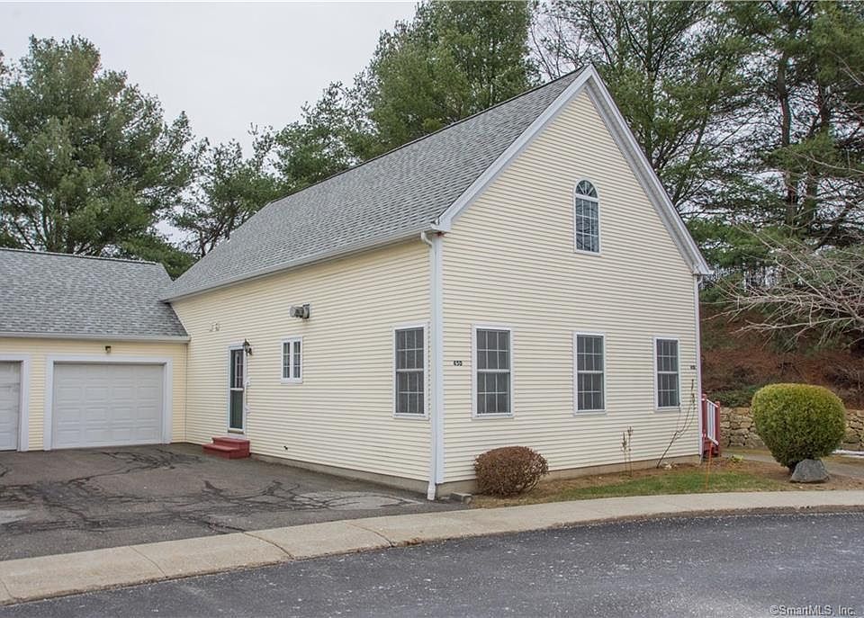 Light-filled and airy corner unit condo in the desirable Forest Park 55+ complex. Located on a quiet cul-de-sac just minutes off of all the conveniences afforded by the commercial corridor of Route 1 (Post Rd), this move-in ready property has so much to offer. Living room has soaring ceilings and a cozy natural gas fireplace. Easy care wood-grained laminate floors in the main rooms, and brand new neutral toned carpeting in both the first floor master bedroom suite and the upstairs second bedroom/bonus loft space all compliment the freshly painted interior. Eat-in kitchen features a breakfast peninsula and a spacious pantry. Dining area has a wall of windows, custom window treatments and a peaceful view of a fieldstone wall and greenery. Main floor half bath and laundry room combination provide additional convenience and functionality. Upstairs loft area has a huge walk-in closet and full bath. HVAC systems replaced within the last 3 years. Full dry basement for storage, or for additional square footage should the new buyer choose to finish. 1 car garage also provides additional storage space. Cozy, private backyard space with concrete patio area. Complex has a lovely community room/club house and an inground swimming pool for summer recreation. One owner property has been loved and well-maintained.