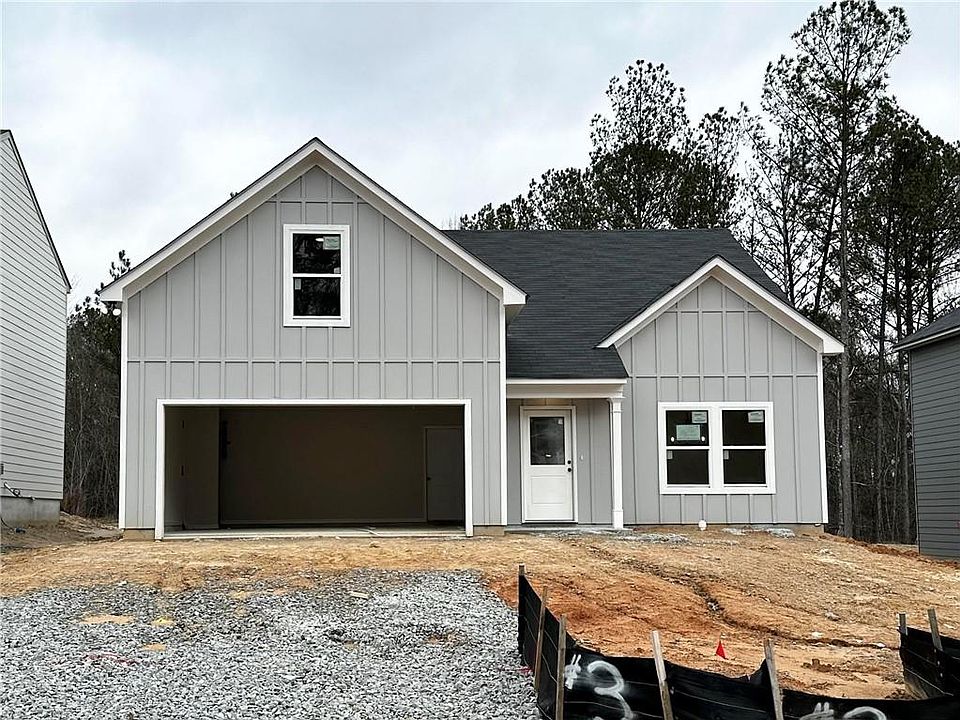 Robert Plan Lot 3: 4BR/2.5BA This master on the main plan has great space! Inside, the kitchen and vaulted great room combine to deliver an inviting, open layout to entertain guests while the separate, formal dining room is perfect for a more intimate gathering. Designer finishes throughout, this home boasts durable LVP, large kitchen island, white cabinets, granite counters, stainless steel appliances, pantry, garage door opener, fireplace, blinds and so much more! The front entry garage conveniently connects to the laundry, never worry about tracking messes throughout this house! The master is a true retreat- high ceilings, large walk-in closet, shower, double sink vanity and enclosed water closet. Situated in the charming town of Braselton, this location offers convenient access to I-85, shopping, dining, and entertainment. Nearby attractions include Chateau Elan, Road Atlanta, and Lake Lanier. Planned amenities include a clubhouse, pool, playground, walking trails, and a fishing dock. Experience the combination of modern convenience and small-town charm—schedule a showing today! New construction, ready April 2024!