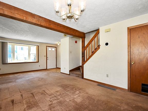 - Features: Beamed Ceilings, Flooring - Wall to Wall Carpet, Window(s) - Bay/Bow/Box, Open Floorplan