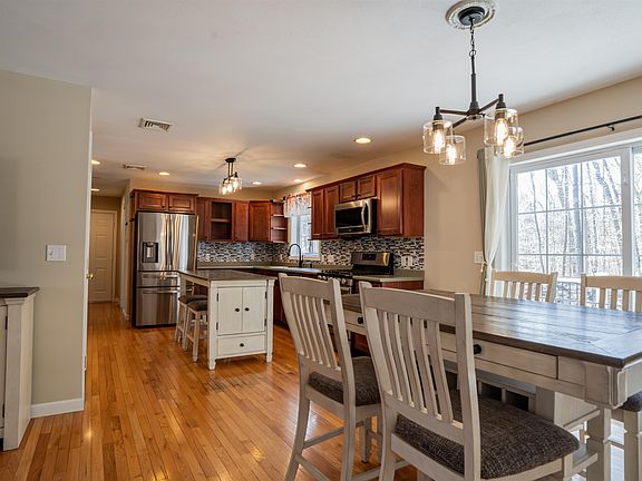 Discover the charm of 45 Francesca Way in Dunbarton Estates! This beautifully maintained 3-bedroom, 2.5-bathroom home invites you in with its open concept layout. The kitchen, featuring hardwood floors throughout and access to a private deck, flows into a cozy living room with a gas fireplace. A formal dining room and convenient first-floor laundry with a half bath enhance the main level. Upstairs, the primary bedroom impresses with a cathedral ceiling, walk-in closet, and ensuite bath. Two more bedrooms and an additional full bath are also found on this level. Need extra space? The third-floor game room or potentially extra 4th bedroom has you covered. Minutes to Pawtuckaway State Park and great commuter location to Manchester and the Seacoast.