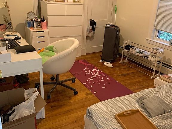 Beautiful, bright, cheery, sun-filled first floor 3 bedroom/1 bath apartment, filled with charm. Gorgeous honey-colored hardwood floors, high ceilings, large bay windows, wooden baseboards, built in book case, walk in closets and ceiling fans abound throughout. Entertaining is so much fun here in the large dining room/living room/kitchen areas, which includes "brand new" oven, refrigerator, dishwasher and garbage disposal. All Utilities Included [does not include cable or Wi-Fi Free Driveway Spot Dining Room: 11 x 14 Living Room: 14 x 18 Ktchen: 9.5 x 19 Bathroom: 6.5 x 5.5 Bedroom 1: 12 x 14 Bedroom 2: 10 x 13 Bedroom 3: 10 x 13 Approx: 1100 sq. ft. No pets no smoking