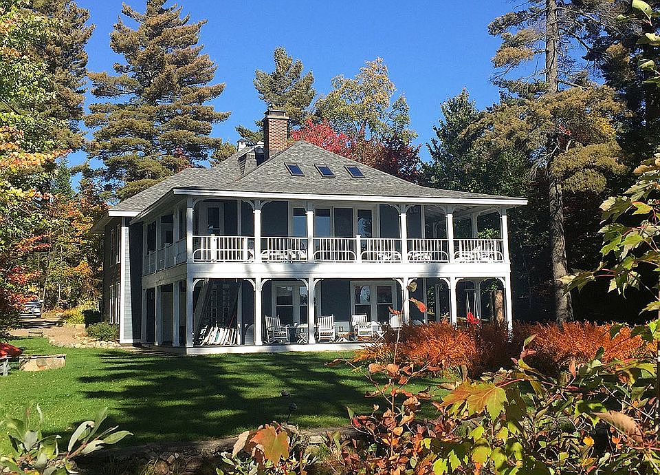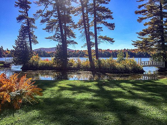 Remarkable and rarely offered Adirondack Cottage with original details and unique dome cupola ceilings, wood work, this home is filled with gorgeous antiques being sold with the property. Enjoy the level lot on pristine Loon Lake with it's own island and lagoon with 2 bridges to access the lovely waterfront with a dock. This private lake is well known for excellent boating and fishing while still maintaining peace and serenity. Both the living room and dining room have fireplaces with french doors leading to a wrap around covered porch and stairs that lead to a lower lake level separate apartment with 2 bedrooms, full bathroom, living room and kitchen. Vacation rental history, easy to show and priced to sell, with Stickley Antiques and one of a kind pieces. It's a wow and not to be missed for anyone looking for a home that is very special.