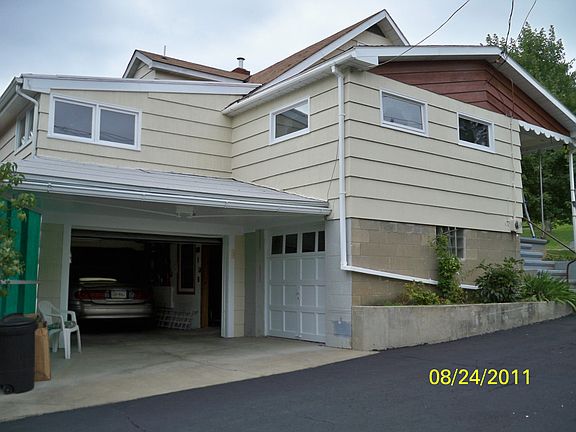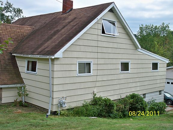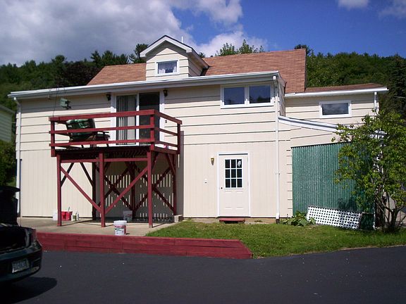 Here is a Cape Cod style home in a desirable residential area of Bradford only minutes from everything. It features a first floor bedroom and first floor bathroom. On the second floor are two bedrooms and a nicely renovated half bathroom. Modern cherry kitchen cabinets wrap around the kitchen and into the dining area. A large den/family area includes sliding glass doors onto a small raised deck. A living room and mud room give lots of options for living space. A partially finished basement includes a wood stove, workshop, and laundry. There is a one car basement garage and a smaller attached garage for extra toy storage. Water is supplied by an on-lot well with a new pump in 2009, and City sewage handles the outflow. Natural gas powers the hot water heater and the forced air furnace. The electric is updated with a 100 amp service. There is a 1200 square foot detached garage and workshop with natural gas heat. The garage interior is finished, and equipped with two 8 x 9 overhead doors and openers. Four cars can park in the garage, plus there is a partitioned-off work area. The lot is over a 1/2 acre with plenty of yard, backing up to a running stream. As an added bonus is an 8 camera WIFI video security system. Note: The corner of the garage has collision damage and is being sold as-is.