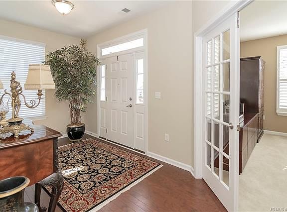 Shows Like a Model! This Classic and Elegant 4 year young Amelia model has many features and upgrades, including hardwood flooring, formal dining room with tray ceiling, custom and bright kitchen with granite counters, beautiful white cabinetry, stainless appliances, 2 pantries, and recessed lighting. With great space for entertaining, featuring an open living room with gas fireplace, with large windows overlooking the picturesque wooded backyard. The luxurious master bedroom suite is a sanctuary, where you can relax and unwind features a walk in shower, double vanity, and tiled floor. The office/den space is LARGE, and can be used as a 3rd bedroom, as it has a good size closet. There is a large laundry room with washer and dryer, leading out to the oversized garage, where there is a walk-up storage space above. You won???t be disappointed with this one! Come see today!