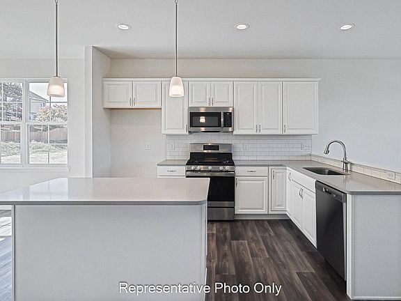 This 3-story townhome includes a 2-car garage with storage area, and a patio for outdoor living. On the main level, the spacious living room opens to the dining area and kitchen. The kitchen features attractive cabinetry, quartz countertops with a tile backsplash, and stainless-steel appliances. The 2nd floor boasts 3 bedrooms, 2 full bathrooms, and laundry. The owner’s suite includes a private bathroom and an expansive closet.