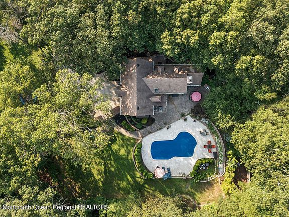 Welcome to this exquisite home located in the highly desirable Clover Hill section of Colts Neck. With its stone and stucco front, this property exudes charm and style that will captivate you from the moment you arrive. The heart of this home is the brand-new kitchen. Thoughtfully designed, it features a gas cooktop, a 3-person island, elegant quartz countertops, hand scraped maple floors, a sophisticated backsplash, wine fridge, a Bosch double oven, soft-close cabinetry and a sunny window seat. Conveniently placed, the updated laundry room/mudroom sits off the kitchen leading to the backyard. Through French doors, the living room seamlessly connects to the kitchen creating a flowing and open living space. The family room, with slate floors offers a cozy and stylish feel featuring a wood burning fireplace and built-in cabinetry. An added bonus is the 3-seasons room, allowing you to enjoy the beauty of nature year-round. The master suite is a true retreat, complete with a sitting room, 3 closets and the spa-like bathroom with a jacuzzi tub. Step outside to the private, backyard oasis, where you'll find a gunite heated pool, stone pavers, and a built-in grill. The home also features a basement and attic with pull down stairs providing ample storage. Aesthetic details such as crown molding, 6-panel doors, and large Pella windows elevate the interior, while the 2-zone HVAC ensures comfort throughout the year. Come experience the allure and elegance this property on Glenwood Road has to offer.