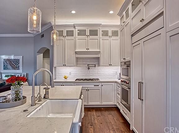Welcome to one of the most incredibly well design homes in Dove Canyon. Beautifully situated between two fairways of the Dove Canyon golf course one is swept away by the majesty of the setting with striking sunset view & mountain vistas. Look no further if your are striving to experience & call home to a remarkable highly upgraded home with the finest finishes. The homeowner spared no expense when completely remodeling ever aspect of the home from quartz & Carrera marble counter tops, custom cabinetry with soft close drawers, gorgeous hardwood floors through out, smart home operated by RTI, high end stainless steel appliances, exquisite custom lighting, redesigned fireplaces the list of upgrades in endless. Your everyday living experience begins & ends in a spectacular master suite with gorgeous views, breathtaking master bath, double sided stone fireplace, large retreat & ample closet space what else could you ask for! Every secondary bedroom is beautifully appointed with the finest finishes & each secondary bathroom has been redesigned to perfection. From sleeping to dining this home has it all with a jaw dropping gorgeous gourmet kitchen everything custom, everything of the highest quality. And if this was not enough the backyard has been worked to perfect with new pebble-tec, stone & tile finishes for the pool, fire pit & awesome BBQ area. This home is perfect in so many ways!!! Come experience it for yourself!!!