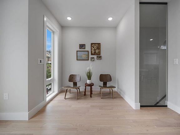Welcome to 45 Graham Street, Unit 2, a stunning 4-bedroom, 3.1-bathroom duplex condo offering over 2,300 sqft of luxurious living space. Located in Jersey City Heights, this residence is conveniently close to the 9th Street Light Rail, Riverview-Fisk Park, Hoboken, and the vibrant dining scene along Palisade Avenue. Designed with timeless finishes and high-end fixtures, this home offers cutting-edge technology for modern living. The main level features an expansive open-concept dining and living area with 10-foot ceilings and oversized Andersen windows, creating a bright, airy atmosphere. A realistic flame fireplace with a tempered glass accent wall makes a bold statement. The chef’s kitchen includes two-tone cabinetry, Thermador appliances, a paneled refrigerator and dishwasher, a 5-burner range, warming drawer, and a double waterfall quartz island with West Elm accent lighting, a porcelain backsplash, pot filler, and externally vented hood. The first floor also includes a beautifully appointed powder room with warm accent lighting. Upstairs, the XL primary suite offers a serene retreat with custom wood-tone millwork, bedside pendant lighting, a walk-in closet with built-ins, and a private balcony. The spa-like en-suite bath boasts modern natural tones, an oversized double vanity, pendant lighting, and a luxurious shower with multiple Kohler body sprays and a rainfall showerhead. Two additional XL bedrooms feature custom closets with built-ins and share an elegant full bathroom with double vanity, soaking tub, rainfall showerhead, body sprays, and floor-to-ceiling tilework. An extra primary suite with custom closets and a full bathroom completes the upper level. The upstairs also includes a separate laundry room with top-of-the-line washer and dryer. A recessed lit staircase leads to an entertainment zone featuring a wet bar with custom cabinetry, a backlit designer backsplash, and a wine fridge. Step outside to a rare full-length rooftop with sweeping views of the NYC skyline. This outdoor space includes premium astroturf and Trex decking, as well as hookups for gas, electric, and water—perfect for entertaining.This smart home is equipped with Google Nest doorbell, security cameras, smart thermostat, touchscreen light switches, and dimmers, all controlled via smartphone. The property includes side-by-side parking in a private driveway. The home is completed with Blue Chip Properties' signature exterior facade, recessed driveway, and professional landscaping. Also qualifies for 5-year tax abatement. Sqft are approx. Don’t miss the chance to own this exceptional residence in one of Jersey City’s most desirable neighborhoods.
