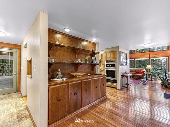 Straight out of a Kincade Painting! This custom Lindal Cedar home sits on a huge 12,739 sqft double lot. Walk inside to office nook & remodeled galley kitchen w/ granite countertops, SS appliances & stone backsplash. Family room boasts wood fireplace & floor to ceiling windows for tons of natural light. 2 beds & full bath on main. Large loft area upstairs w/ wood fireplace, remodeled bath, walk-in closet & secret storage room. Step downstairs to bar w/ custom live edge, fireplace, wine cellar, game room + expansive Primary suite w/ soaker tub, private bath & dry sauna. Outside features wrap-around deck, dog run, covered carport, lush landscaping & more. Enjoy all SV amenities including clubhouse, beach access, trails, 24 hr security & more!