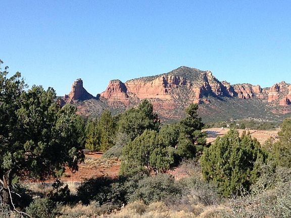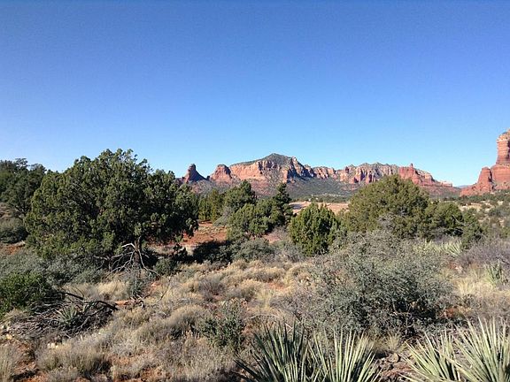 Gated La Barranca subdivision encompasses a number of hills and ridges tipped toward panoramic Red Rock Views. This 1.28 acre lot is located on a corner with an elevated building site to offer panoramic views of Red Rock Monuments and mountains to the North. It is in a quiet location toward the back of the subdivision. Plans exist for an a stunning home that runs the ridge top. Owners had once planned to build, and petitioned the HOA to shift the building envelope, which was approved at that time (now expired).They're yours for free with the lot! The plans work with the terrain and step up the lot's easy slope. If you are looking for lots in La Barranca, this one merits a close look! Corner pins to be marked in late January '14.