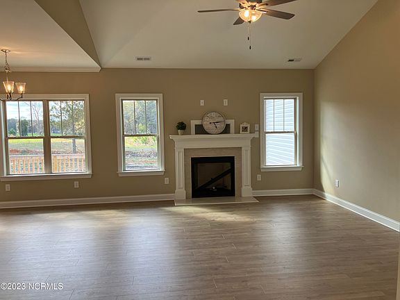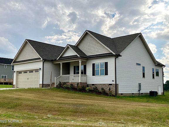 The REGINA II:NEW CONSTRUCTION Ranch~Rocking Chair front porch~OPEN Family room with gas log fireplace and VAULTED ceiling~Kitchen has Island,Stainless Steel Look appliances and GRANITE Countertops, TILE Backsplash ~WALK IN Laundry Room~Primary suite with TRAY ceiling and Large Walk in Closet~Master bath boasts DUAL vanity, SEPARATE shower, relax in your Garden Tub~Spacious Guest Rooms~Deck~LEVEL lot~Welcome Home
