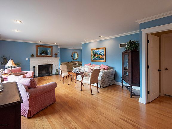 - RoomLivingRoomFeatures: Dec Molding, Floor - Wood, Fireplace - Woodburning
