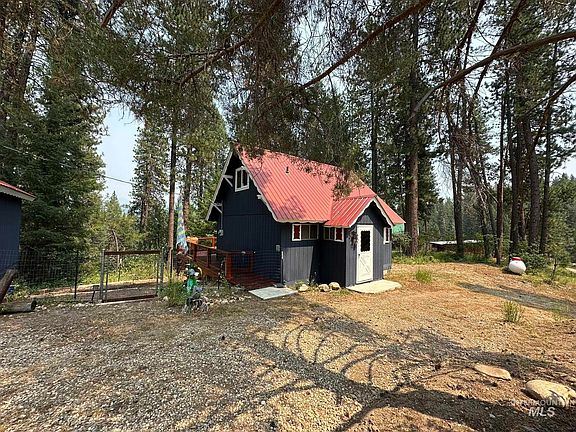Nestled in a tranquil forest, this charming 960 sq ft cabin offers a perfect escape from everyday life. The rustic tongue and grove walls and ceiling give you a cozy feeling and the open-concept living area features a propane fireplace providing a warm gathering spot. The compact yet well-equipped kitchen boasts modern appliances and a quaint dining nook, ideal for sharing meals after a day of adventure. The large sleeping loft provides plenty of room for extra company or a great master retreat. Adjacent to the cabin, a charming bunkhouse provides additional sleeping or could be an office for those working from home. The back deck is perfect for barbecues and stargazing, inviting you to savor the serene ambiance. There is plenty of room to build a garage or add on to the existing home. Whether you’re hiking, fishing, or simply unwinding, this delightful cabin promises a memorable woodland getaway. Terrace Lakes offers golf, geothermal pool, restaurant/bar & pickleball. Buy now/enjoy summer in Garden Valley!