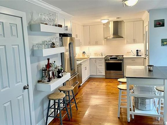 Easy living awaits in this perfectly Charming two- bedroom Ranch! East to West sunlight exposure streams through updated living space, custom shelving and Beautiful 5 wood floors throughout. Renovated kitchen with Quartz countertops and stainless steel Bosch Appliances: refrigerator, stove and dishwasher. Primary bedroom has a HUGE walk in closet with built in lighted vanity. 2nd Bedroom is a generous size. Updated Bathroom outfitted with gorgeous Marble tile. Mudroom off the custom pebbled driveway for a coastal town vibe. Back entrance can be used as office or additional mudroom to back patio entertaining! The Garage while not a traditional size, offers storage space. Set on .39 acres, enjoy privacy and nature and tons of outdoor space to create your own backyard oasis! Home can be expanded (with Town approval) 45 Harvester is the perfect entry into this fabulous and upcoming Fairfield neighborhood. Town of Fairfield amenities apply! parks, beaches, libraries, restaurants and a variety of local shops!