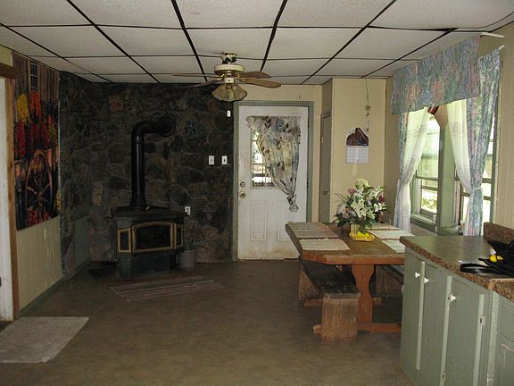 Large and roomy home with 4 bedrooms plus an office (or possible 5th bedroom). Open and roomy kitchen with large wood burning stove, large laundry room with lots of room for extras. Lot has lots of shade trees and great garden spots and beautiful mountain view with minor clearing. Home needs some TLC but has great bones while being on a concrete slab.